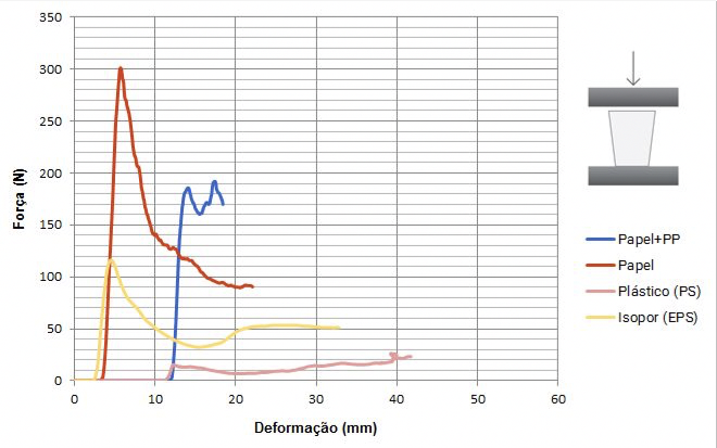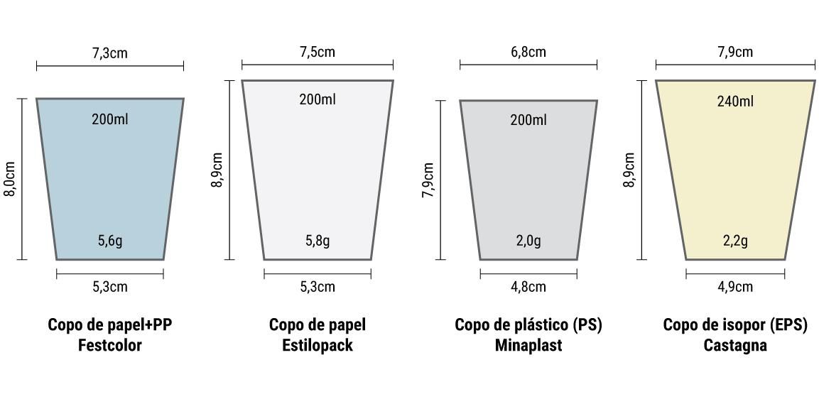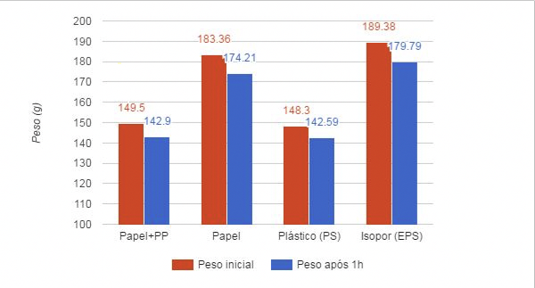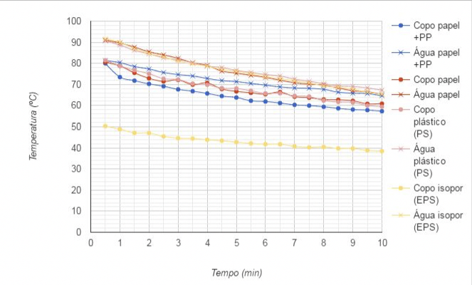 Percebe-se uma popularização da preocupação com o impacto ambiental dos copos descartáveis. Desse contexto surge a motivação para este estudo, que tem foco no uso cotidiano de copos descartáveis. Foram feitos: teste de isolamento térmico, teste de vazamento, ensaio de compressão e observação em microscópio. Como objeto de estudo, foram escolhidos 4 tipos de copo descartável de uso voltado a bebidas quentes, de acordo com seu material: papel com e sem revestimento plástico, poliestireno (plástico) e poliestireno expandido (Isopor). Busca-se comparar propriedades tecnológicas dos materiais, investigando especificamente um material recente no mercado brasileiro, considerado mais sustentável: o copo de papel.
