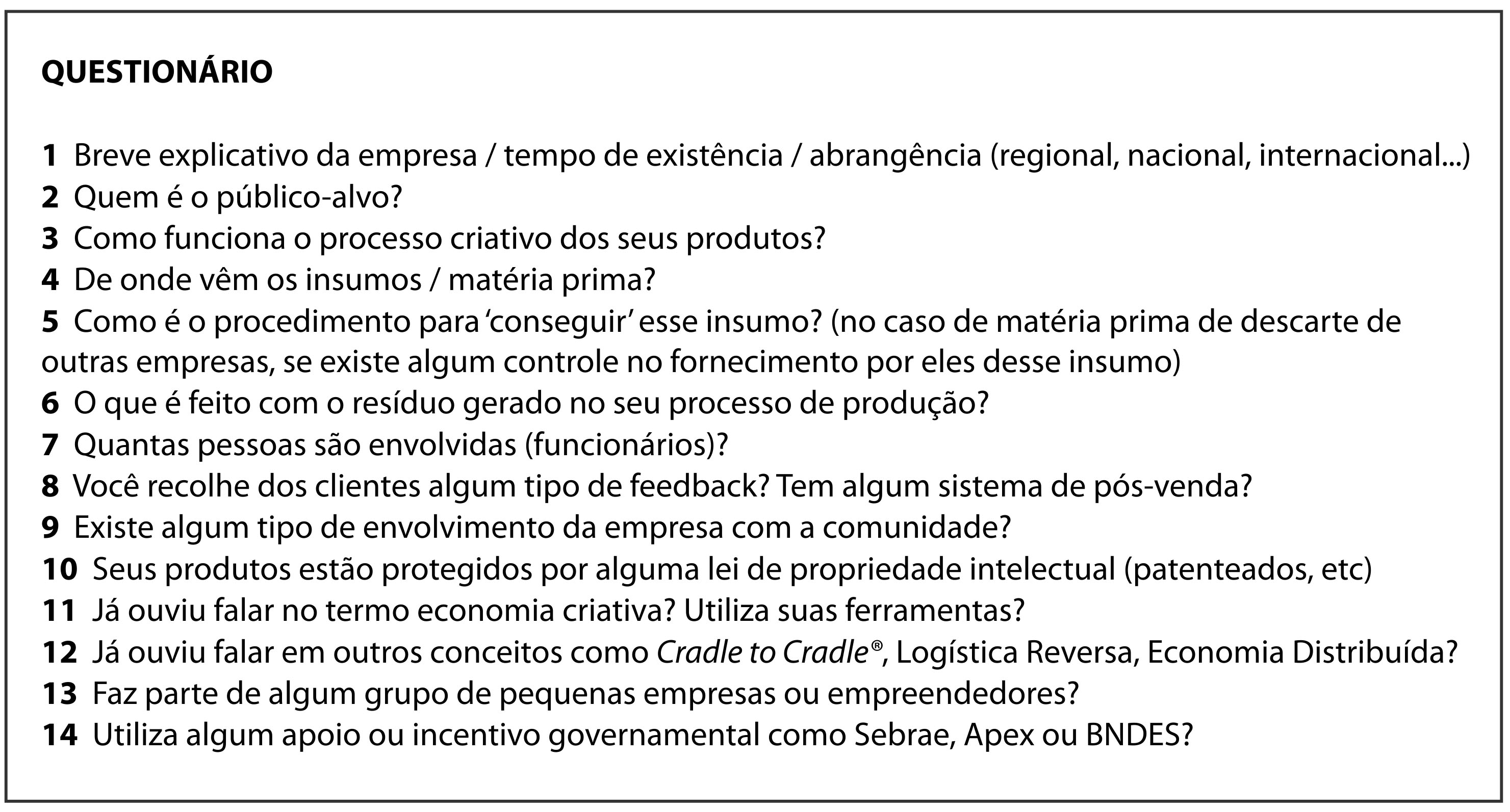 No universo da economia de materiais, do design e da sustentabilidade objetivou-se conhecer realidades brasileiras referentes ao uso de resíduos no desenvolvimento de produtos e suas relações com conceitos, normas e leis que propõem soluções para o panorama de escassez dos recursos naturais. Foram realizados pesquisa bibliográfica, pesquisa documental e estudo de caso de duas empresas que utilizam resíduos naturais (madeira, pedras e conchas) e industriais (poliuretano expandido) em seus processos e produtos. Os resultados obtidos evidenciaram o desconhecimento dessas empresas mediante aos conceitos emergentes estudados e a complexidade da legislação vigente quanto à valorização de resíduos como matéria-prima.