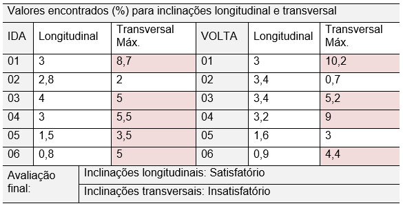 - Tabela 01 – Inclinações máximas para cada trecho estudado