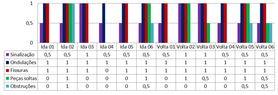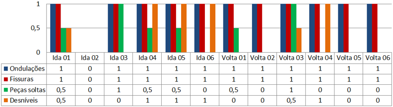 - Gráfico 01 – Resultados do levantamento da regularidade de superfície das calçadas no recorte estudado